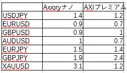 大した違いはないと思う人は多いでしょうが、XAUUSD(ゴールド)で決定的な差があり、それ以外はだいたい同等。