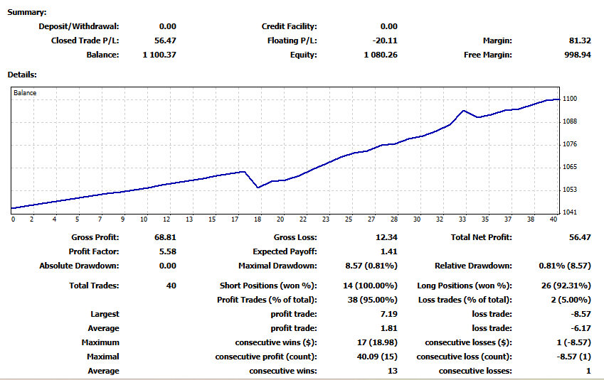 成績の詳細は以下の通りで、1種類の EA で始めて 17連勝しました。