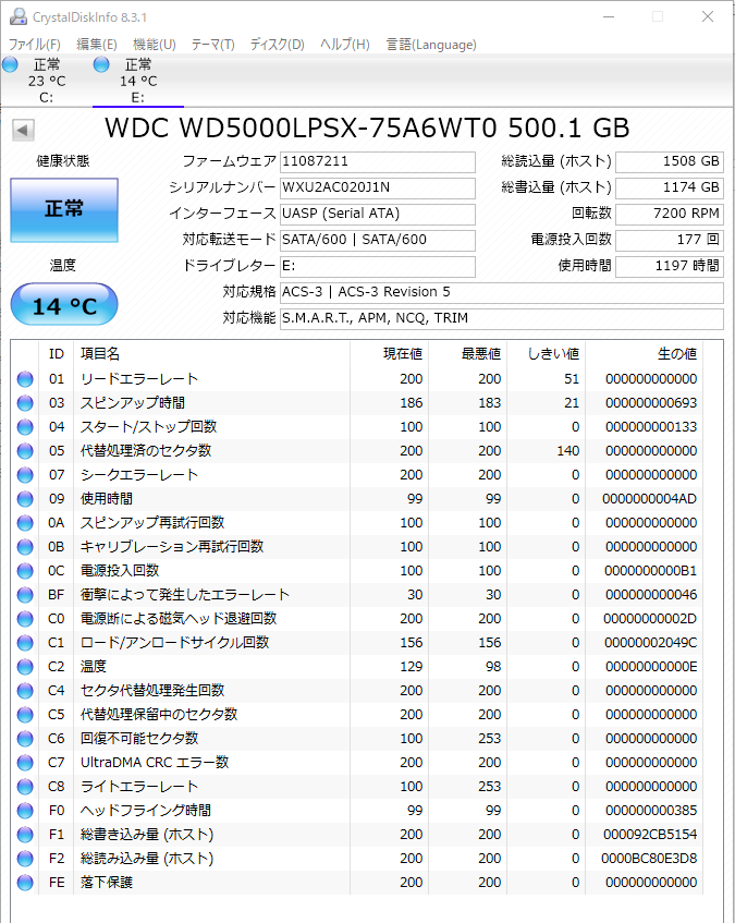 7200回転の Blackシリーズなので HDD としてはそこそこの速度が出そうです。