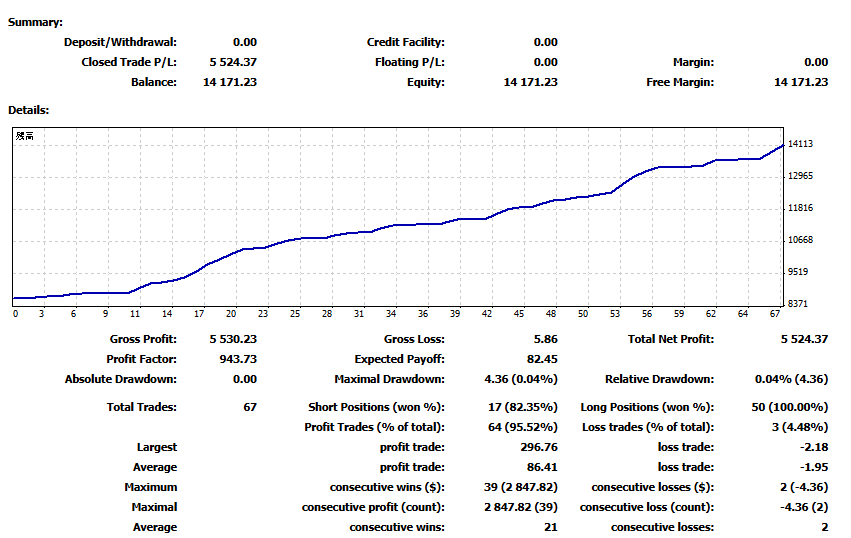 ほかの口座の多くでは、連勝を続けたか あるいは 一度だけ負けたか ですが、とりあえずこの EA はしばらくデモ口座だけで様子を見ます。