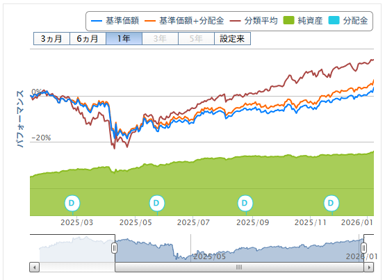 通称「楽天SCHD」と呼ばれている 楽天・高配当株式・米国ファンド(四半期決算型)は長らく不調でしたか、いつのまにか絶好調に。