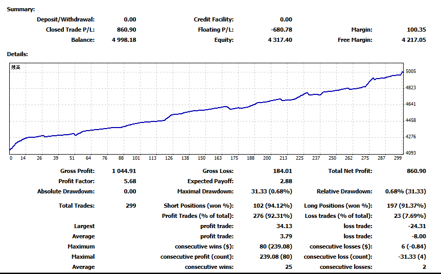 同じ設定、同じ期間の TitanFX のデモ口座では、