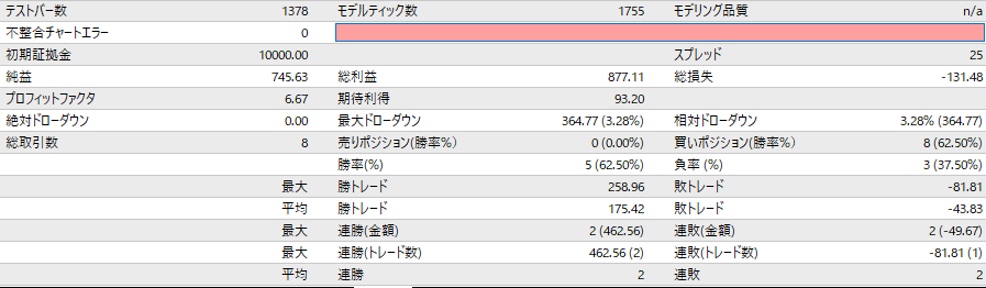 売りエクシットは「固定ロスカット、直前の高値割れ、RSI の 50超え、ー1σを上抜けのいずれか」。