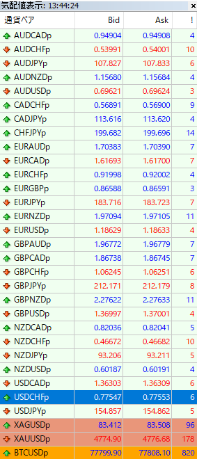 スプレッドフィルタをつけており、現在の設定値は 100ポイントにしています。