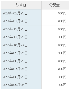 毎月配当で、毎月25日が決算日です。