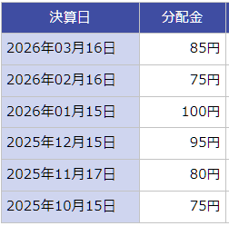 85円が 12ヶ月続けば 年 10%弱と、QQQI や QYLD に比べるとやや低いですが、それでも十分高配当。