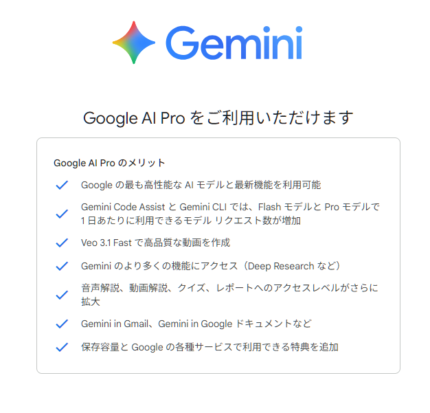 本日から Google AI Pro に課金をすることにしました。